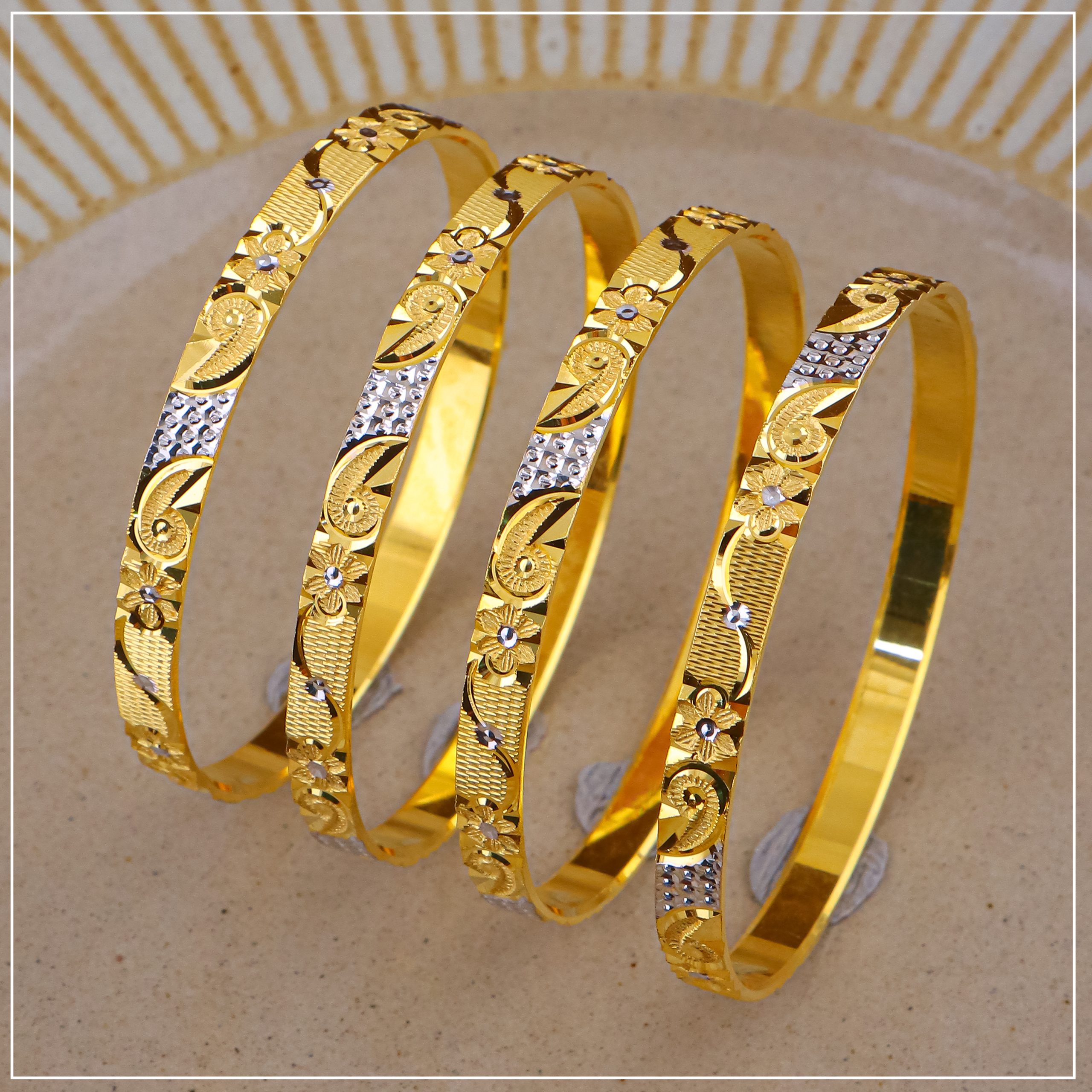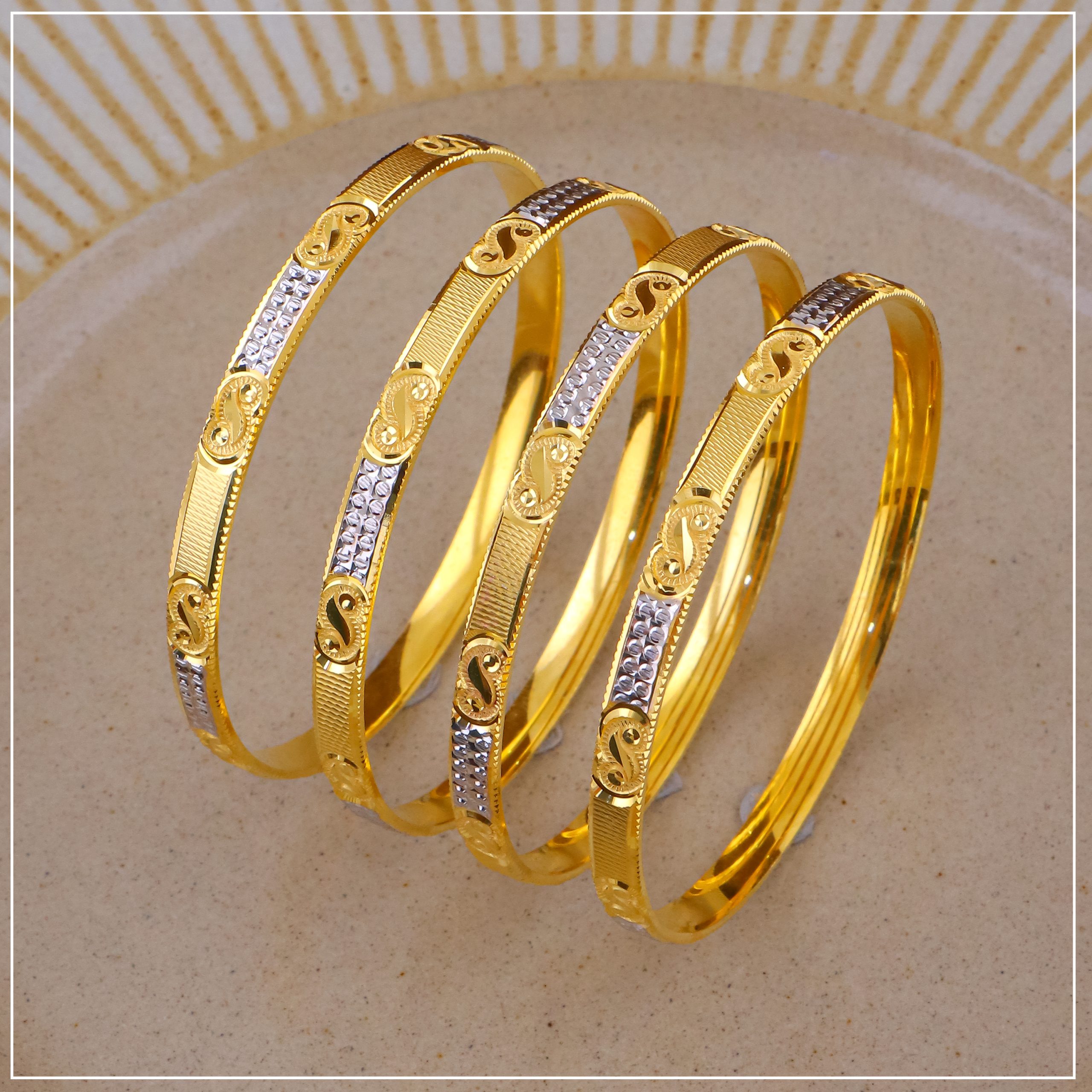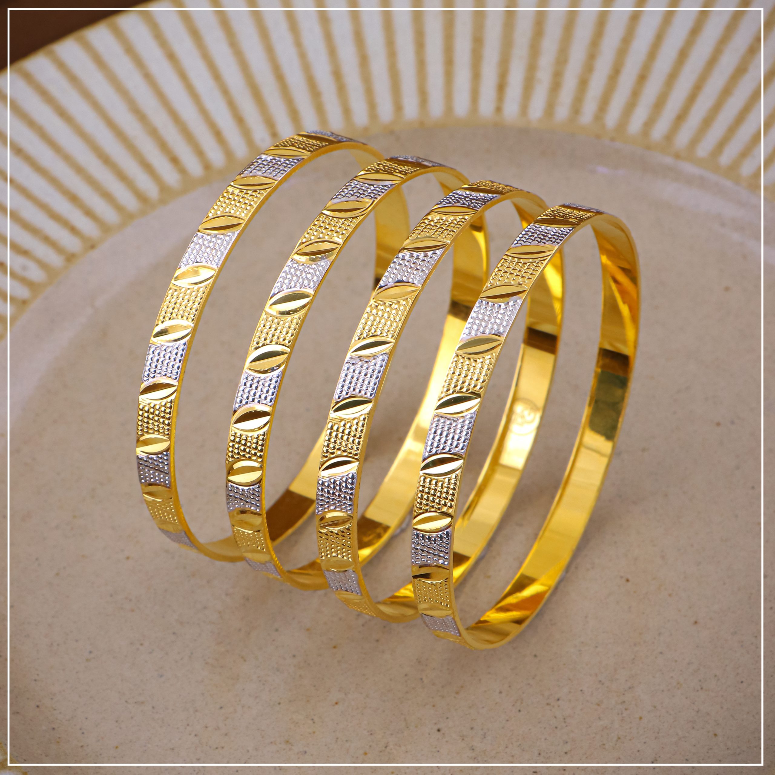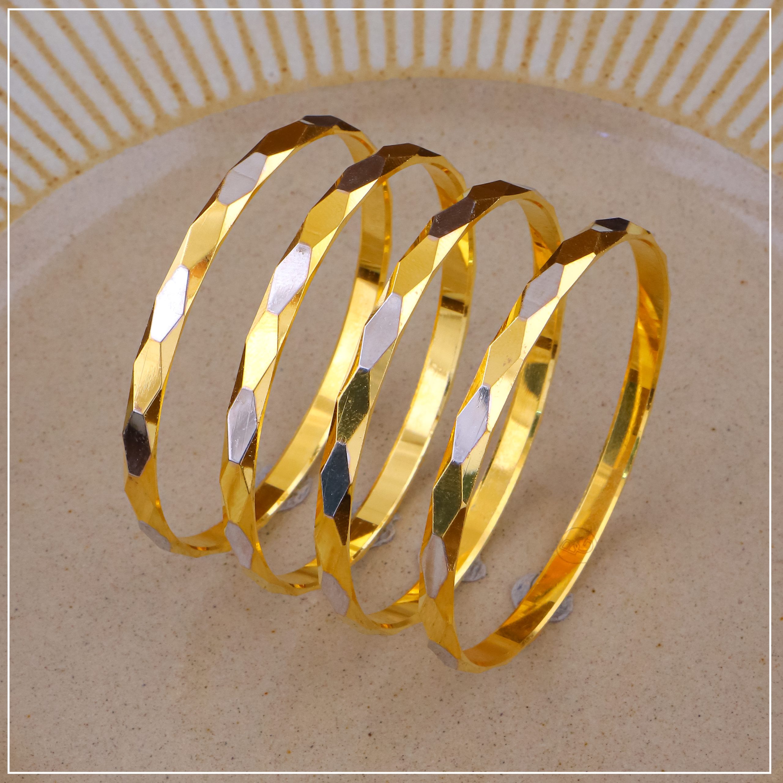 - Product: 4 Set Plain Gold Forming Bangles with Rodium Finish