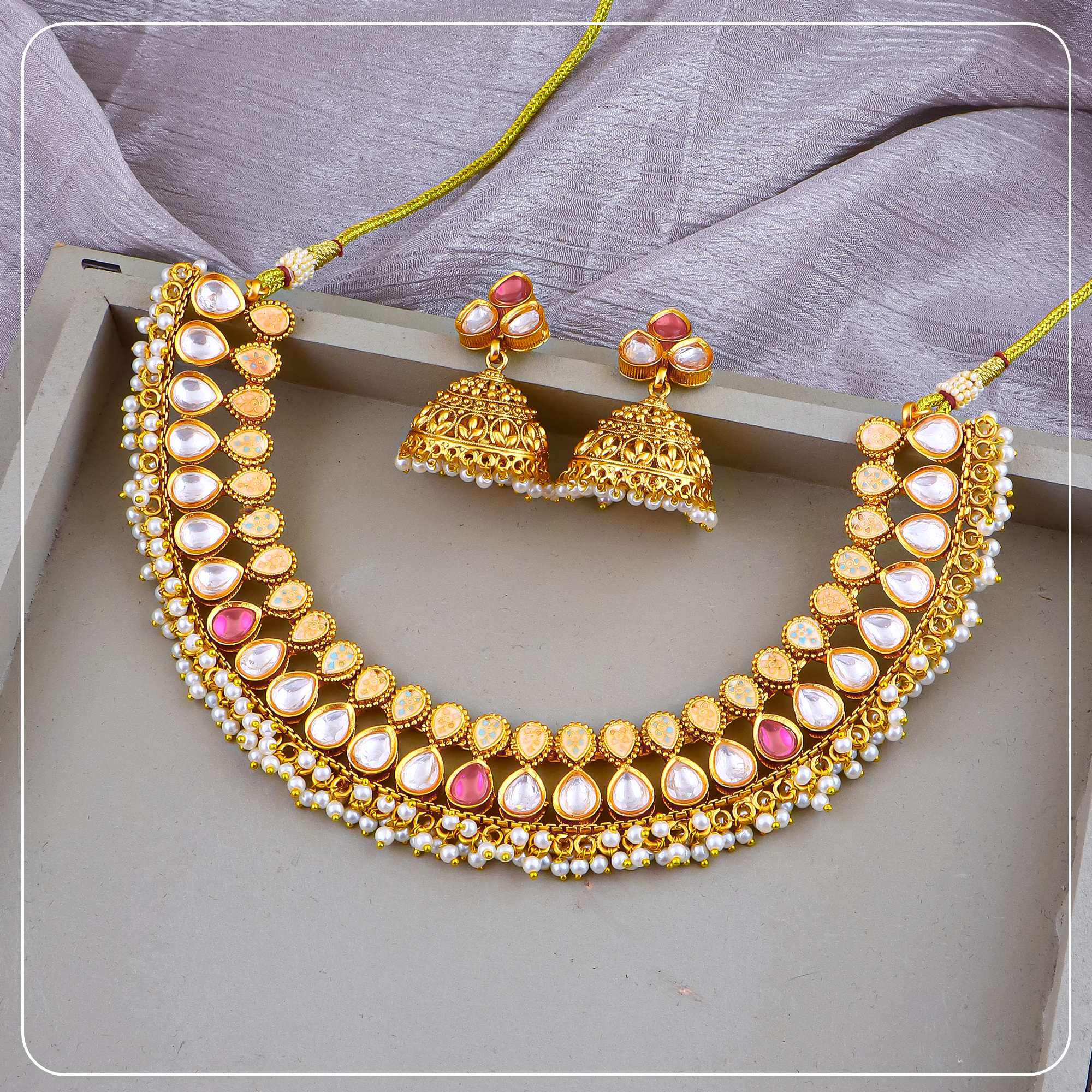 - Style Tip: Layer with a long antique set or pair with antique jhumkas for a bridal or festive look