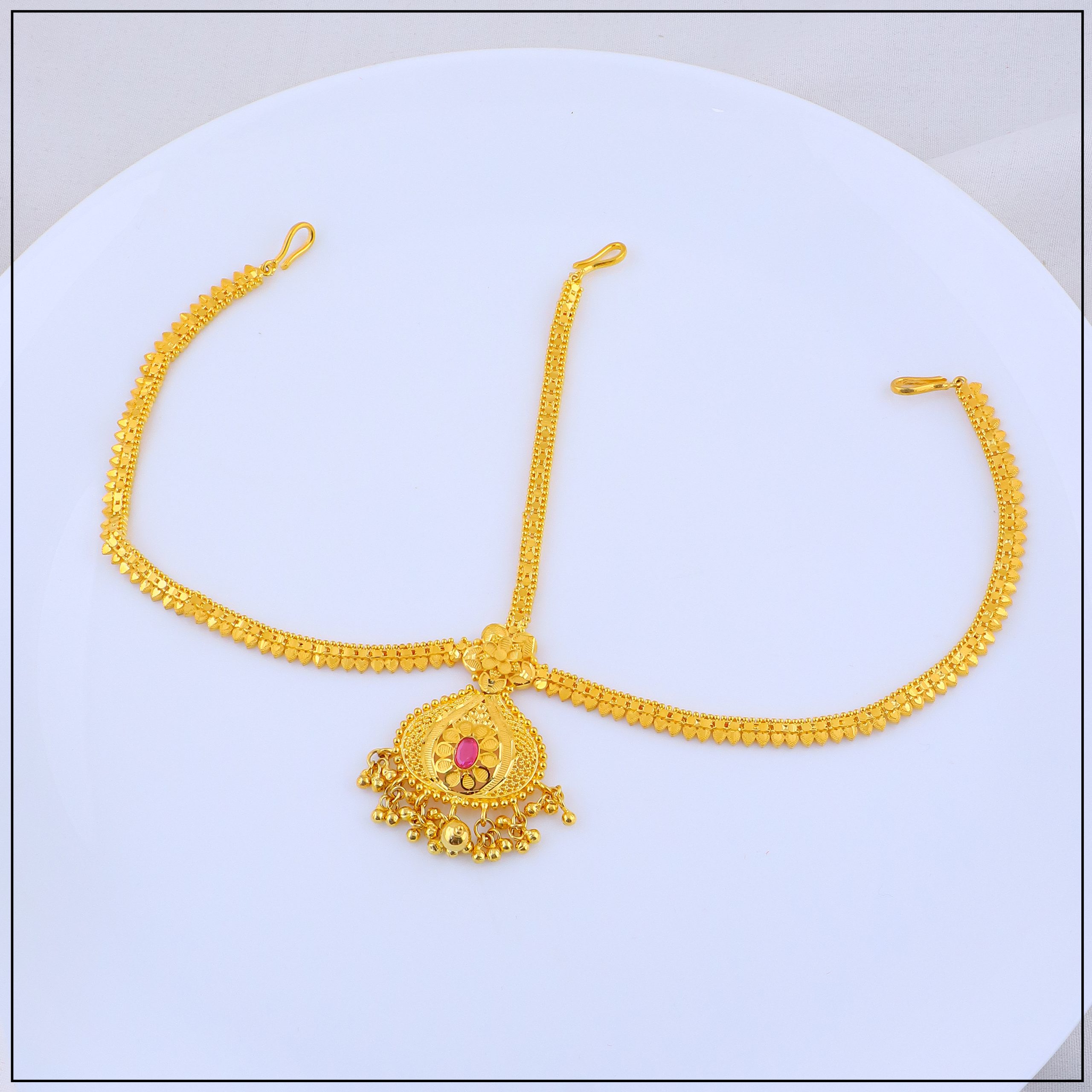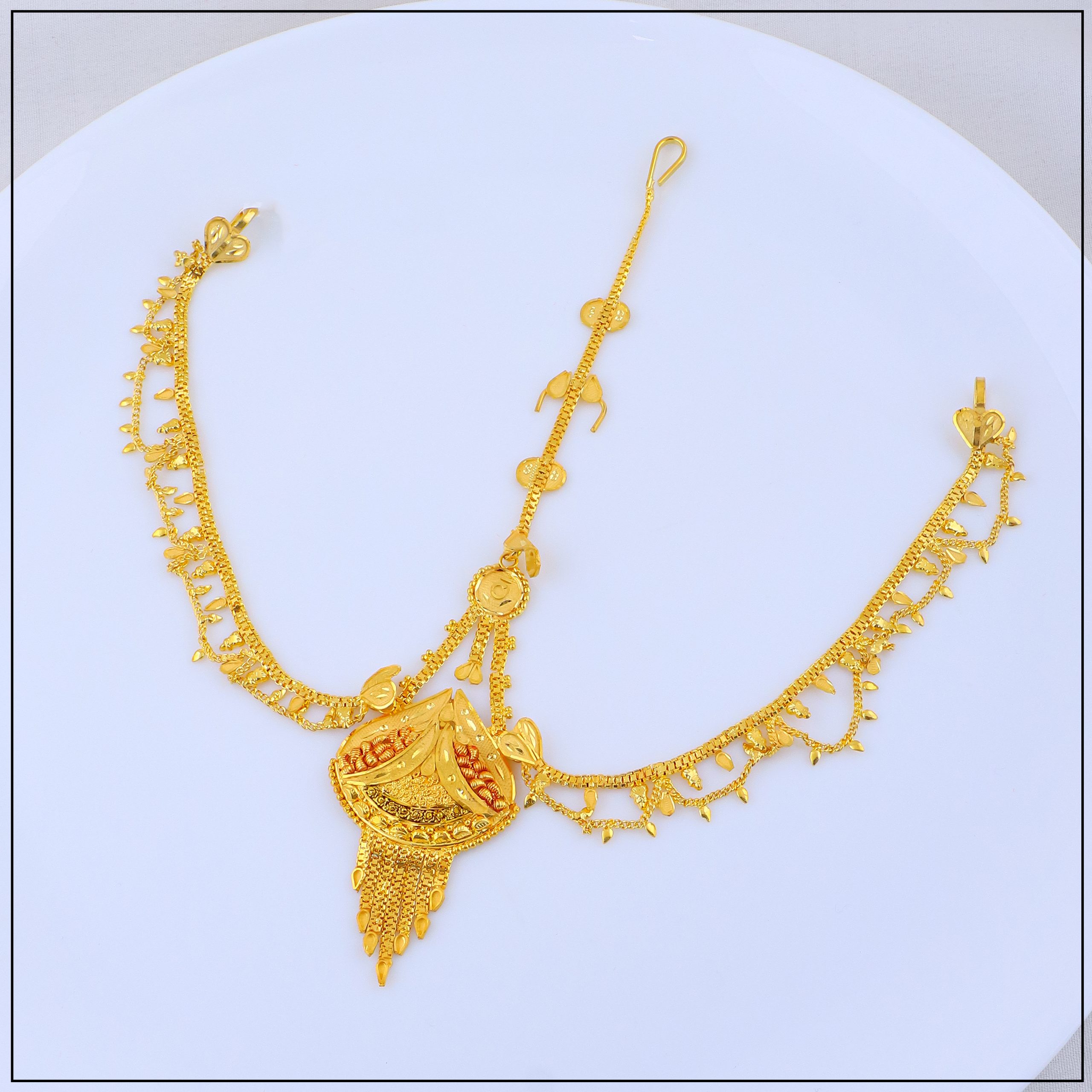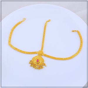 Expertly crafted with high-quality gold forming techniques, our bandhi offers the look of real gold at an affordable price. Intricate designs, temple patterns, and detailed motifs create a bold yet elegant statement. It’s lightweight, adjustable, and comfortable—ideal for long wear during weddings, cultural events, or traditional performances.