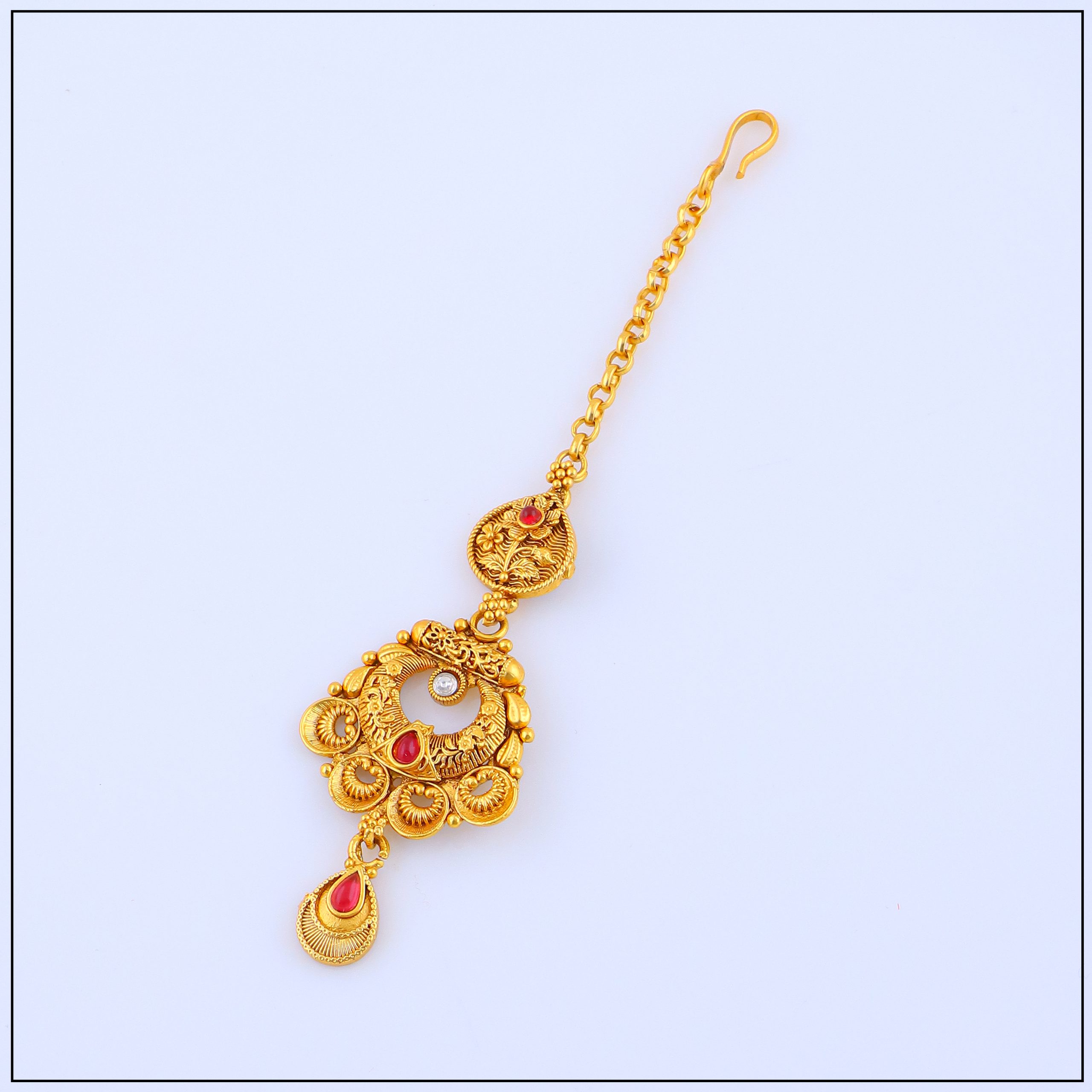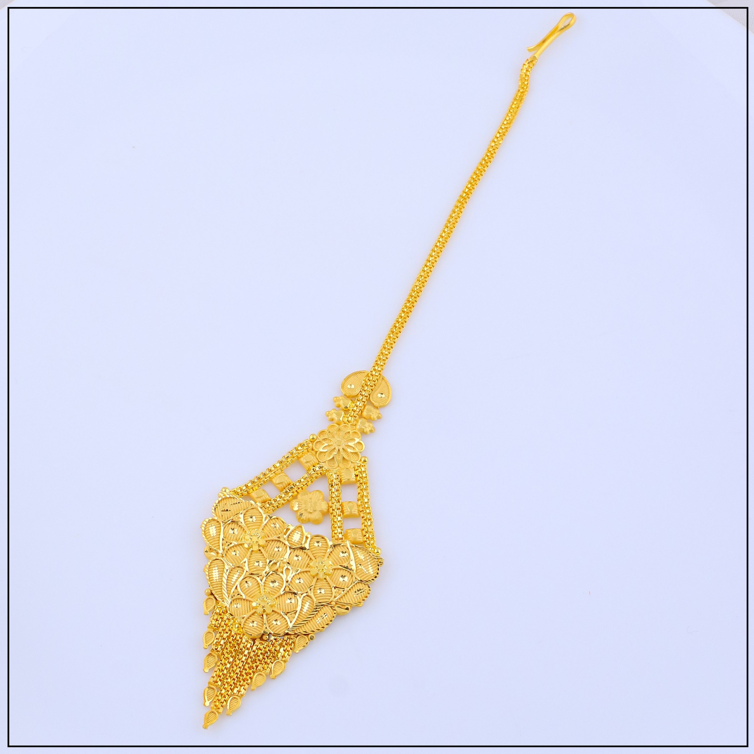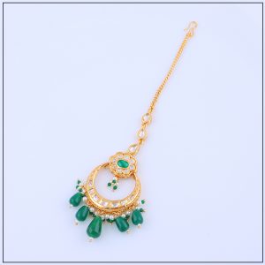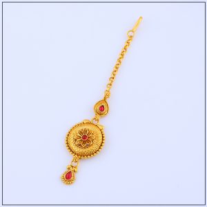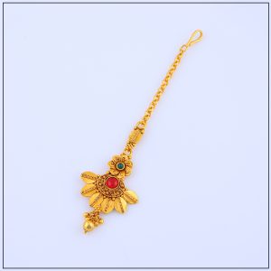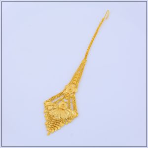 Made with premium gold forming craftsmanship, our tikas replicate the rich look of real gold while being lightweight and comfortable for extended wear. Designed with intricate patterns, floral motifs, and sometimes adorned with pearls or stones, it rests gracefully on the forehead, highlighting your facial features and enhancing your traditional outfit.