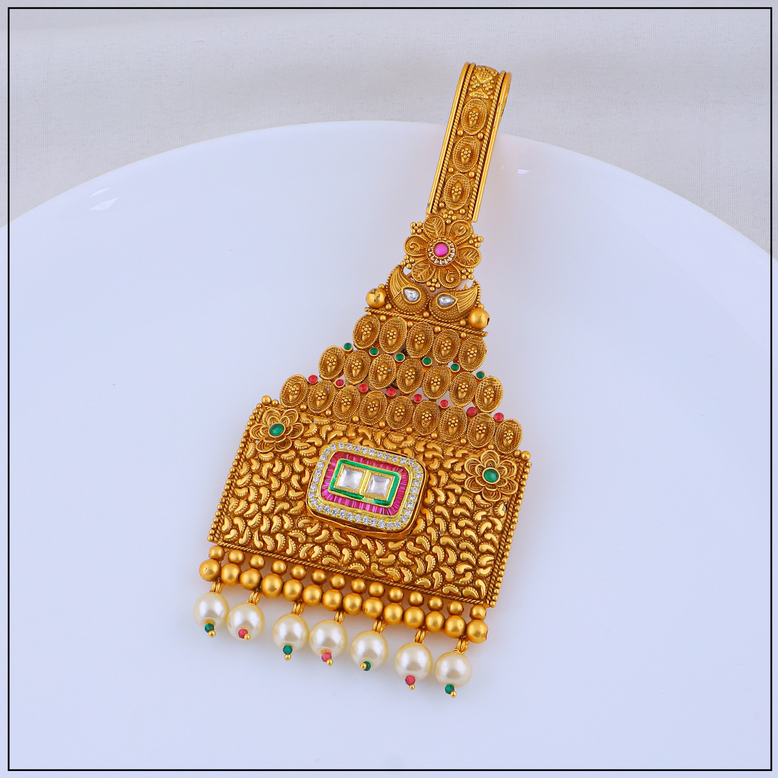 Our zuda collection is crafted using premium gold forming techniques, offering the look of real gold with added comfort and durability. Delicately designed with traditional motifs, chains, and subtle detailing, these anklets are lightweight yet sturdy—perfect for bridal wear, classical dance, and festive outfits. Every step you take becomes more graceful with the gentle jingle of Bhawani’s zuda.